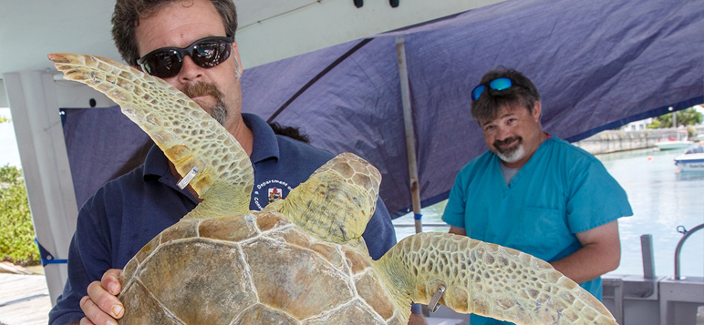Photos:(holding turtle) Dr. Mark Outerbridge is Wildlife Ecologist with the Department of Environment and Natural Resources