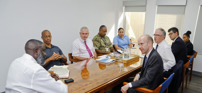 - Press ReleaseEarlier today, the Minister of National Security, the Hon. Wayne Caines JP, MP, welcomed Governor John Rankin and the Director of Overseas Territories Mr. Ben Merrick to the Ministry Offices.
