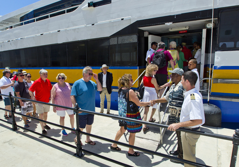 The Bo Hengy II on Monday began providing tender service for NCL cruise ship visitors between the Royal Naval Dockyard and the Town of St. George, under the guidance of a Bermudian crew of five, led by long time mariner, Cruiseport Ferry Management Ltd. CEO and reserve captain Beau Evans.