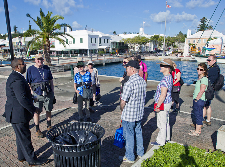 Joined by BEDC’s Ray Lambert, the group spoke with St. George’s Crown Creative Director, Jarae Thompson about his new St. George’s Community Newspaper, and Mark Soares, Bermuda Yacht Services, shared stories about the impact of visiting yachts to the St George business community.