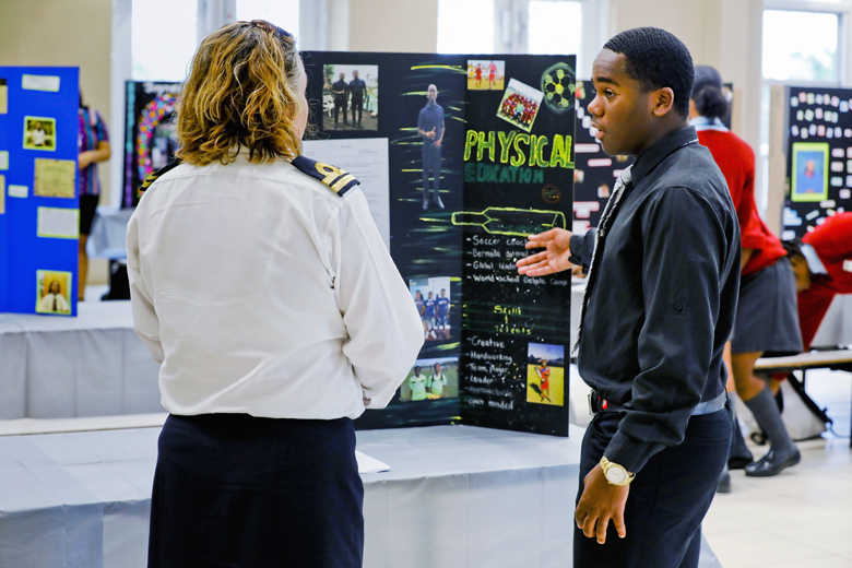 At this event, senior school students from CedarBridge and the Berkeley Institute had the opportunity to represent and market themselves to potential employers. Some industries represented today included Hospitality, Medical, Accounting, and The Bermuda Government.