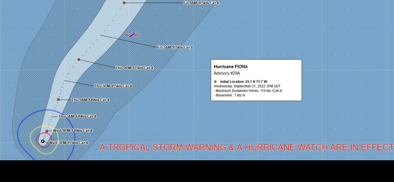 Hurricane Fiona, a Category 4 storm, continues its track towards the island and remains a threat to Bermuda. As of the noon forecast, Bermuda is under a Tropical Storm Warning and Hurricane Watch.